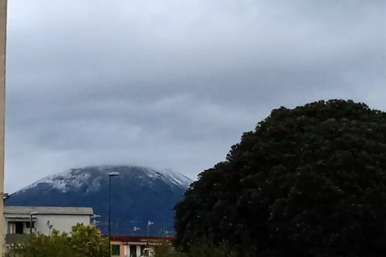 E’ imbiancata la cima del Vesuvio a causa del clima freddo che si sta abbattendo su Napoli e i comuni della fascia