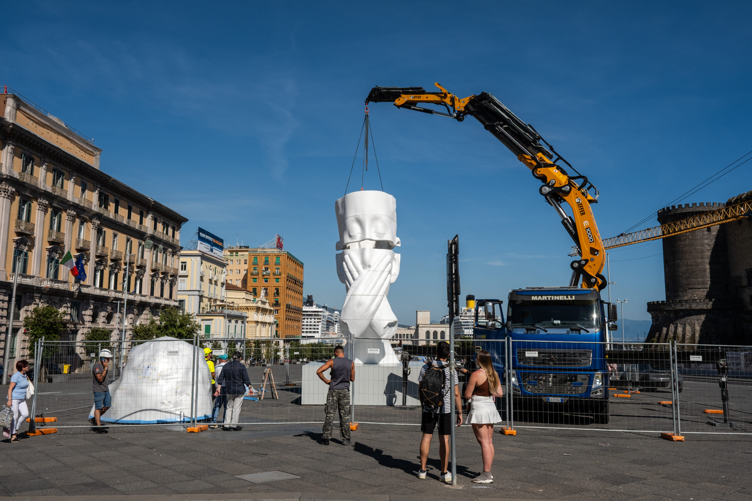 “L’opera che Jaume Plensa ha portato a Napoli, un volto di donna in parte velato dalle mani, è un’immagine di intensa delicatezza e profondità. Un simbolo di introspezione, silenzio e ascolto interiore, che si staglia nel cuore pulsante della città: piazza Municipio, che vibra di vita, suoni ed energia, tra la sua storia millenaria e il presente in continua trasformazione. Napoli dialoga con l’arte, la accoglie e la fa propria, e Plensa ha saputo interpretare con sensibilità questo spirito aperto, umano e complesso della nostra realtà. L’Amministrazione continua così a credere nella sfida culturale e civica rappresentata da “Napoli contemporanea”: portare l’arte fuori dai luoghi canonici, oltre le pareti dei musei e delle gallerie, per restituirla alla comunità, alla quotidianità. Questo progetto è un passo decisivo per fare di Napoli, che ha sempre vissuto di contaminazioni, creatività spontanea e bellezza diffusa, un laboratorio permanente di arte e pensiero contemporaneo. È un invito a guardare con occhi nuovi i suoi spazi e a riconoscere nell’arte uno strumento di trasformazione urbana e sociale“.