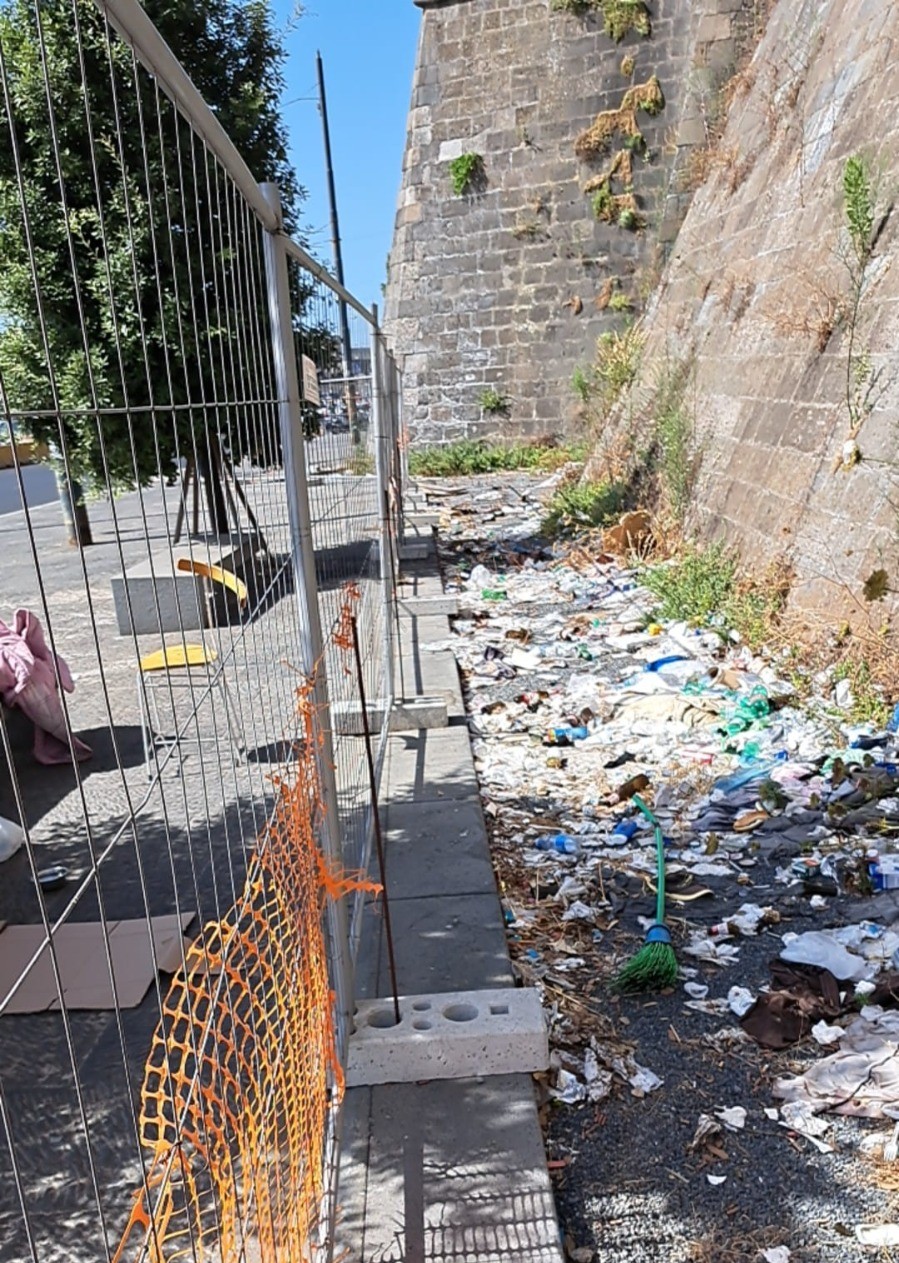 L’area, attualmente recintata per consentire la messa in sicurezza delle mura storiche, si era trasformata in un deposito di rifiuti, rendendo necessaria anche un’attività preliminare di sanificazione.