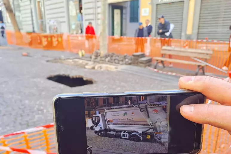 Napoli – Una voragine si è aperta nella notte nella zona pedonale di via Scarlatti, nel quartiere Vomero a Napoli. Nel buco è andato a finire un compattatore dei rifiuti rimanendo per fortuna in bilico.