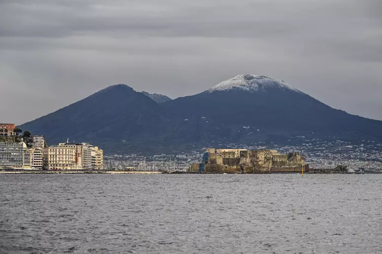 L’effetto delle precipitazioni che da due giorni stanno interessando l’intera area vesuviana, è stata la presenza di un evidente strato di neve sulla cima del vulcano, effetto visibile anche dalla città di Napoli.