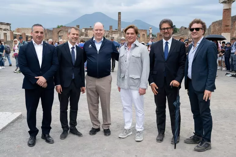 Agli Scavi, Alberto II di Monaco è stato ricevuto dal direttore del Parco Archeologico che lo accompagnerà in un tour tra le ultime scoperte archeologiche “dove si rileva – ha detto Zuchtriegel – anche il lavoro degli studiosi che hanno preceduto le ultime scoperte”.