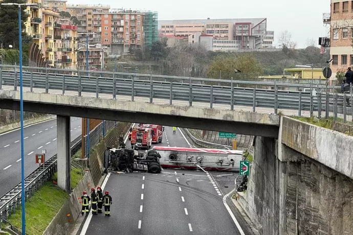 Sul posto sono già giunti i vigili del fuoco. Lunghe le code che si stanno registrando. La società Tangenziale di Napoli chiede agli automobilisti di evitare di immettersi in Tangenziale sia in direzione est, per i veicoli provenienti da Capodichino/Autostrade, sia per i veicoli provenienti da Fuorigrotta a causa della chiusura dell’intera tratta per motivi di sicurezza e la rimozione dell’autocisterna ribaltata. “Alle 12:15 circa, sulla A56 Tangenziale di Napoli, è stato temporaneamente chiuso il tratto compreso tra Vomero e Fuorigrotta in direzione Pozzuoli – riferisce una nota della società Autostrade – a causa di un incidente avvenuto all’altezza del km 10.1, nel quale è rimasta coinvolta una cisterna che si è ribaltata occupando l’intera carreggiata. Sul luogo dell’evento sono intervenuti i Vigili del Fuoco, i soccorsi sanitari e meccanici, le pattuglie della Polizia Stradale e il personale della Società Tangenziale di Napoli”.