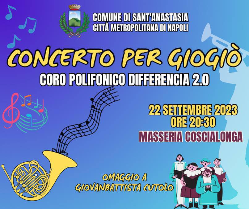 Sant’Anastasia. Masseria Coscialunga, “Concerto per Giogiò” il 22 settembre. Si esibisce il Coro Polifonico Differencia 2.0