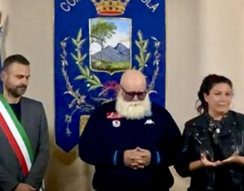Cercola (Na) – L’iconico personaggio di Cercola Emilio Perrella, in arte Lo Stallone di Cercola, giovedì scorso, ha ricevuto un riconoscimento ufficiale dal Comune di Cercola perchè è stato tra i protagonisti assoluti della mostra fotografica “Napoli, chi sei?” di J.R., prestigioso artista francese e molto conosciuto sul piano internazionale per la sua capacità di cogliere i volti le anime e i luoghi che caratterizzano la quotidianità delle grandi metropoli del mondo. La gigantografia di Perrella svettava su tutti i 606 volti di Napoli fotografati da J.R. Da maggio ad ottobre scorso, decine e decine di migliaia di visitatori hanno ammirato la mostra fotografica a Napoli, in via Toledo presso le Gallerie d’Italia.