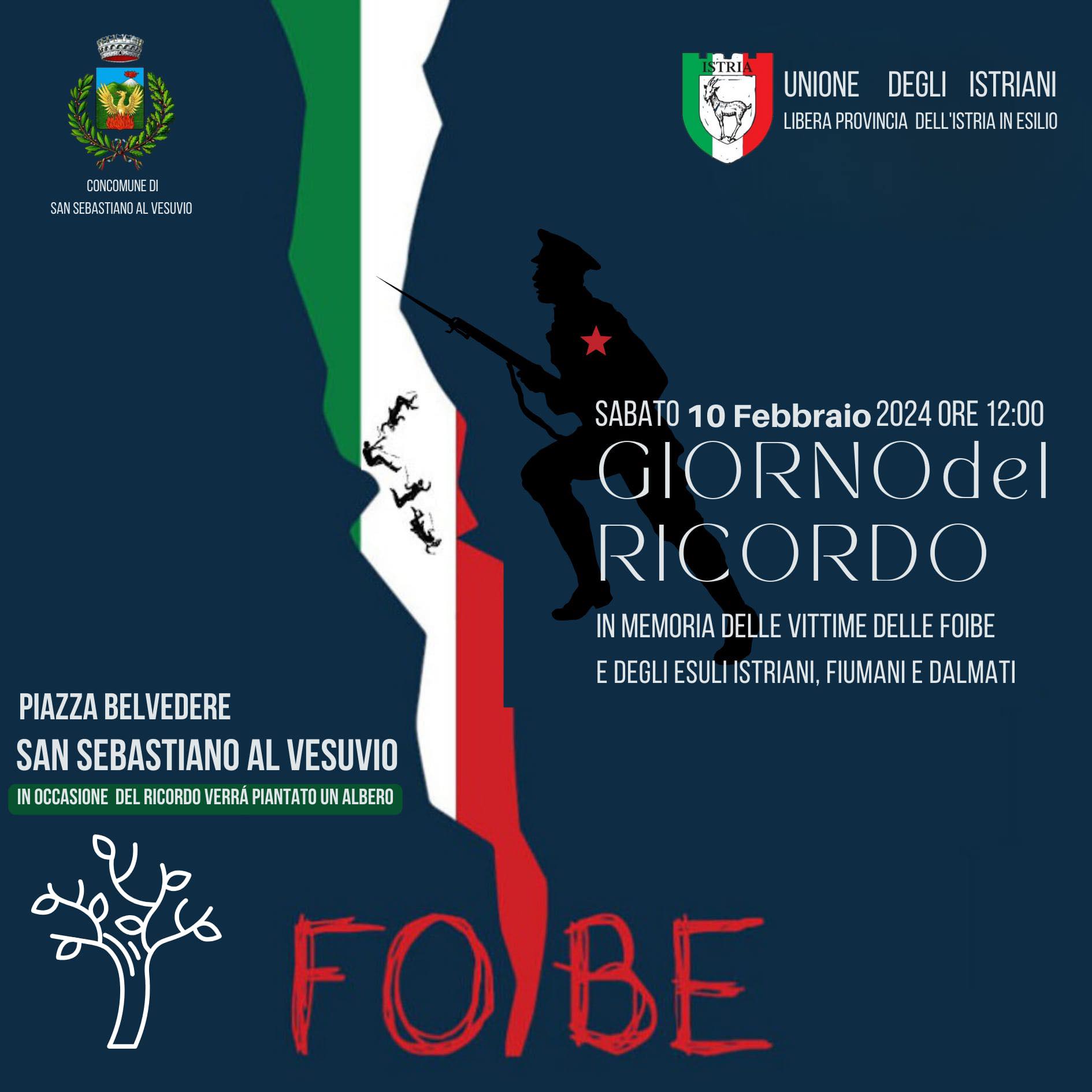 “Sabato 10 Febbraio alle ore 12, presso il Belvedere di San Sebastiano al Vesuvio, per la prima volta in assoluto, celebreremo Il Giorno del Ricordo, solennità civile Nazionale, al fine di conservare e rinnovare la memoria della tragedia degli italiani e di tutte le vittime delle foibe, dell’esodo dalle loro terre degli istriani, fiumani e dalmati !”, ecco quanto annunciato da un post del suo account facebook di Giuseppe Ricci, consigliere comunale e storico rappresentante di Forza Italia. Iniziativa promossa e condivisa anche dall’assessore Ignazio Simeoli.