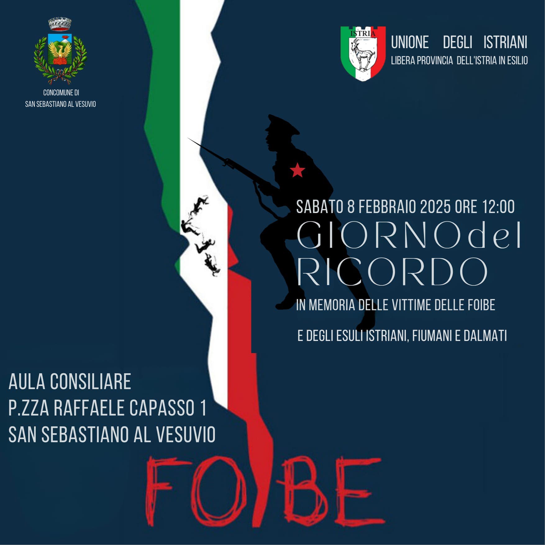San Sebastiano al Vesuvio (Na) – “Vista la grande partecipazione dell’anno scorso, In occasione del Giorno del Ricordo, Sabato 8 Febbraio 2025 ore 12 . 00 , la comunità di San Sebastiano al Vesuvio si ritroverà, per il secondo anno consecutivo, per commemorare le vittime delle #foibe e dell’esodo giuliano-dalmata.” Ecco l’annuncio di Giuseppe Ricci, consigliere comunali della maggioranza che sostiene l sindaco Giuseppe Panico. L’iniziativa è patrocinata dal comune di San Sebastiano al Vesuvio.