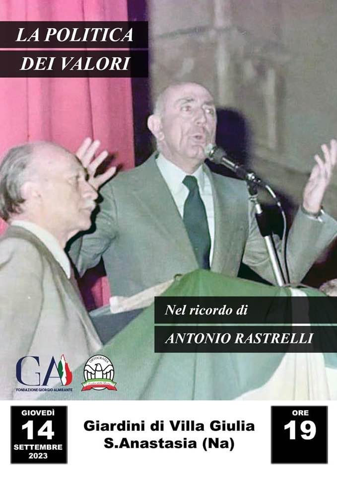 Sant’Anastasia (Na) – “La Politica dei Valori”. Sarà questo il tema dell’evento celebrativo, a quattro anni dalla scomparsa, del “Presidente Galantuomo” Antonio Rastrelli, organizzata da Ortocrazia, l’associazione che fondò insieme ad Alfonso Gifuni, e dalla Fondazione Almirante, presieduta da Giuliana de’ Medici, figlia di donn’Assunta.