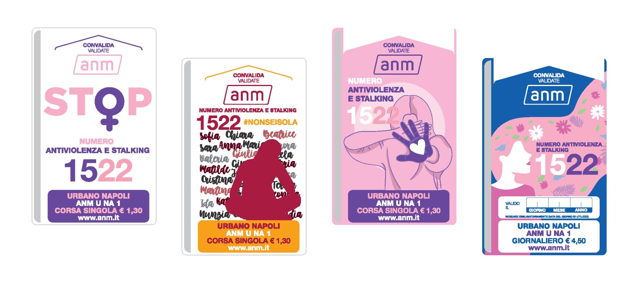 Napoli – – Da domani, mercoledì 18 ottobre, sarà in distribuzione la serie speciale 1522 di biglietti ANM, realizzata in collaborazione con il Comune di Napoli per supportare la diffusione del numero antiviolenza e stalking 1522.